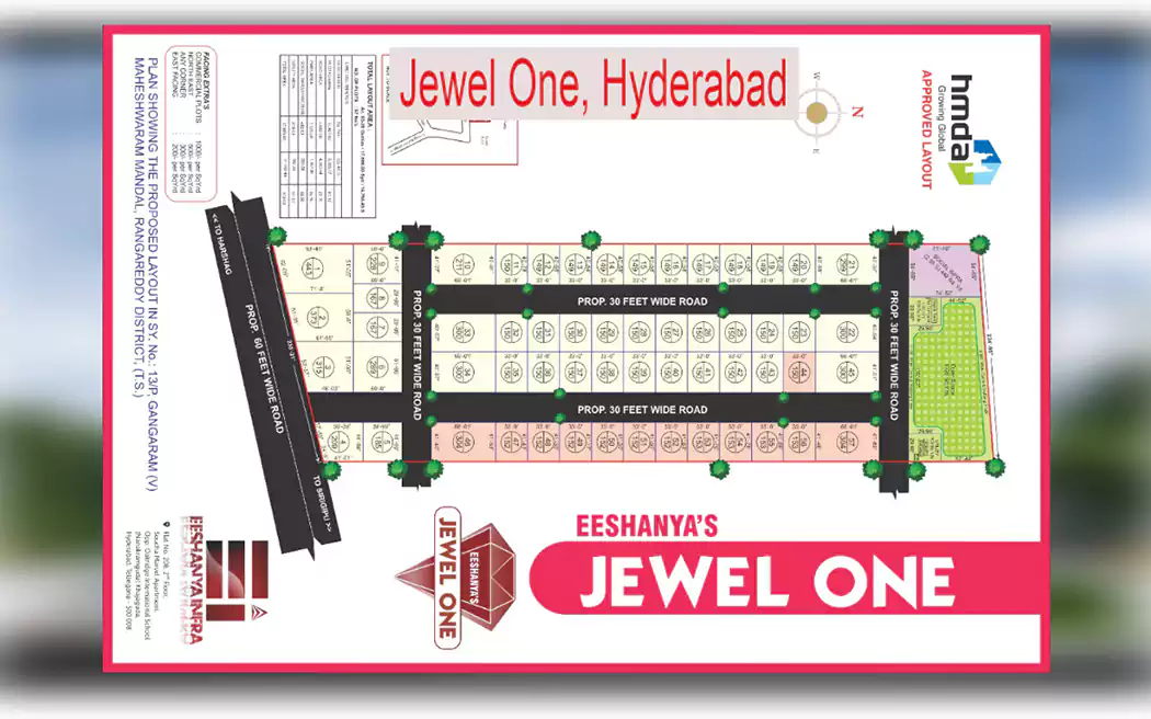 Eeshanya JEWEL ONE is a premium HMDA approved plotting layout that covers 3.5 acres of land near Harshaguda village in