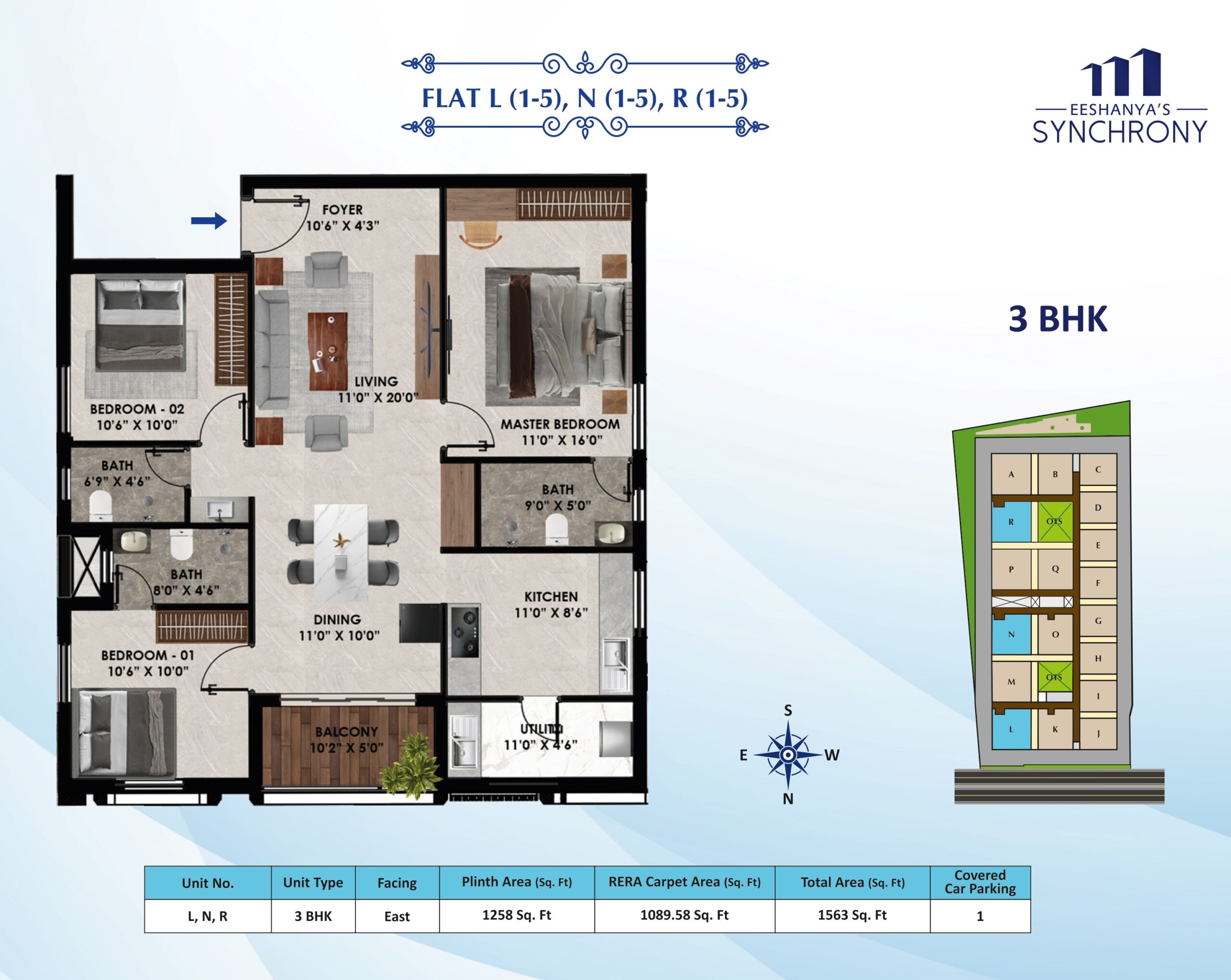 2, 2.5 & 3 BHK homes – Ranging from 1145 to 1563 sq. ft.